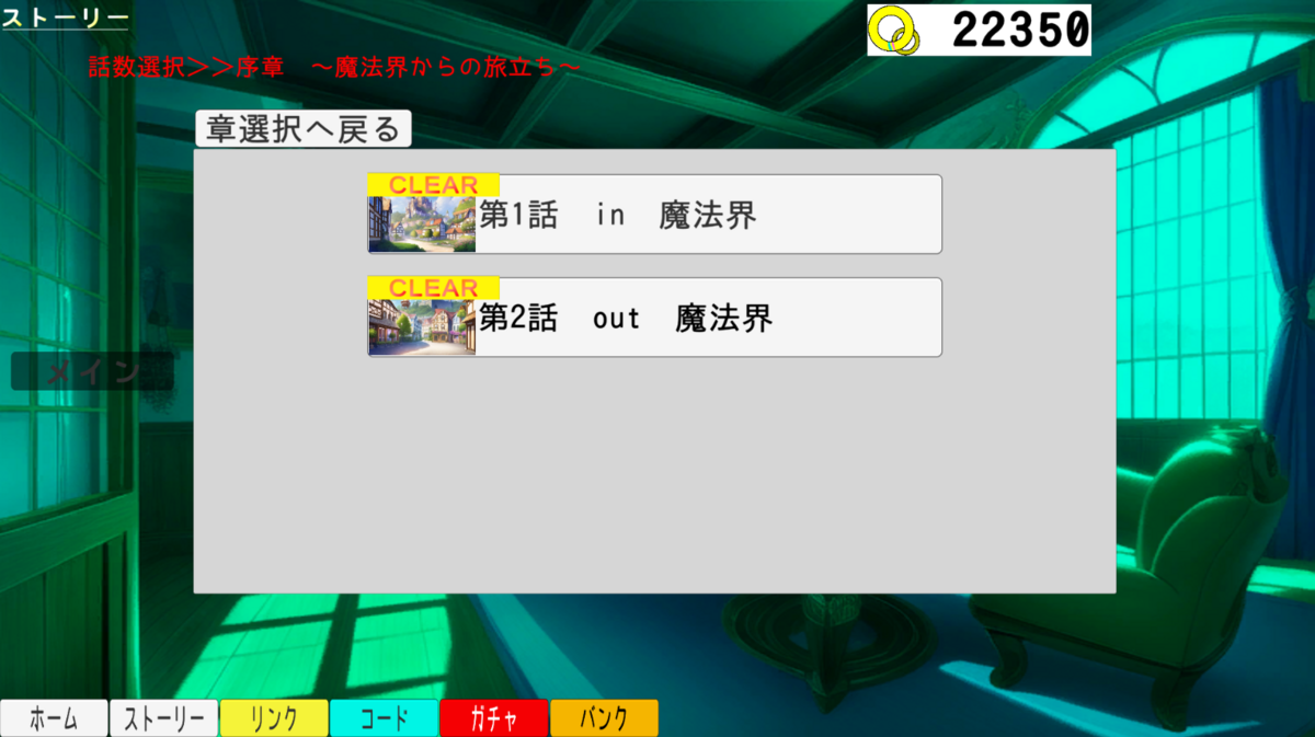 章のストーリーを全て読んだ場合は、章選択画面にもCLEAR表示が表示されますよ!